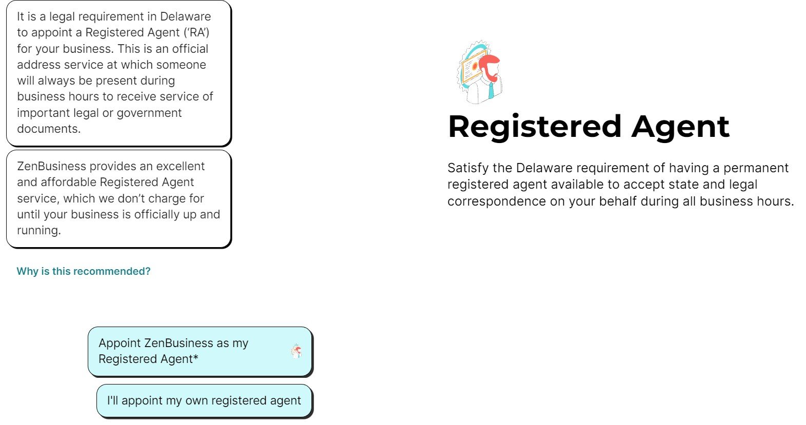 While you can choose to act as your own Registered Agent or handle EIN registration on your own, ZenBusiness offers these services for a fee to help you save time.