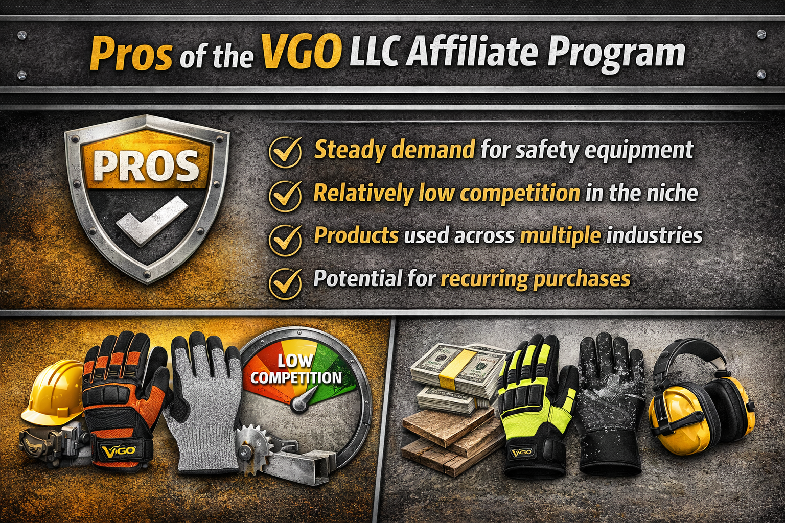 The VGO LLC Affiliate Program offers a unique opportunity in the industrial equipment niche. While many affiliate marketers chase trendy products like gadgets and software, safety gear remains a stable market driven by real-world needs. Workers across construction, manufacturing, logistics, and automotive industries rely on protective gloves every day.